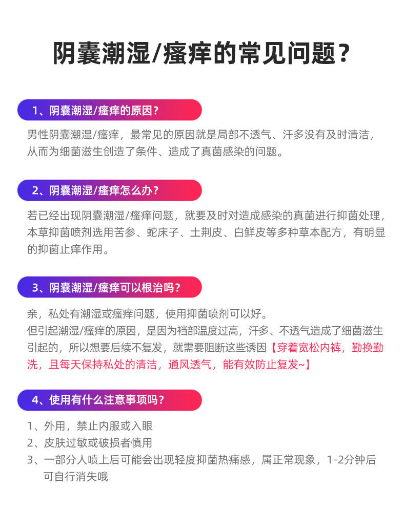男性陰部瘙癢陰囊潮濕蛋蛋汗多異味大就用本草通玄男康抑菌噴劑一噴就爽