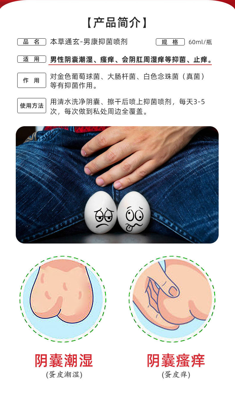 本草通玄陰囊濕癢止癢男士下陰瘙癢潮濕異味蛋皮出汗大腿內(nèi)側(cè)抑菌噴霧