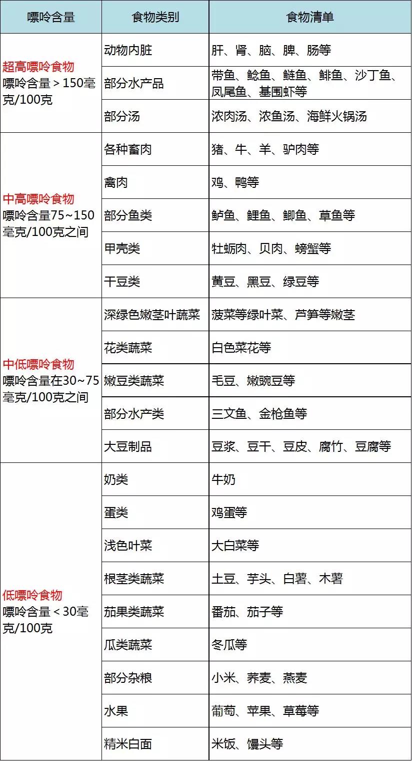 哪些嘌呤含量高,要少吃?哪些嘌呤含量低,能多吃?一張最全食物嘌呤表告訴您。