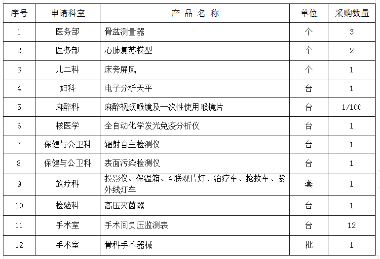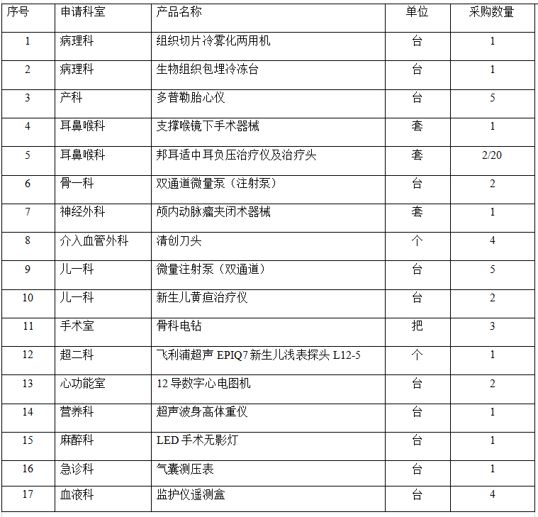 我院擬對以下醫(yī)療器械進行采購,請符合條件的供應商報名: