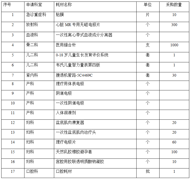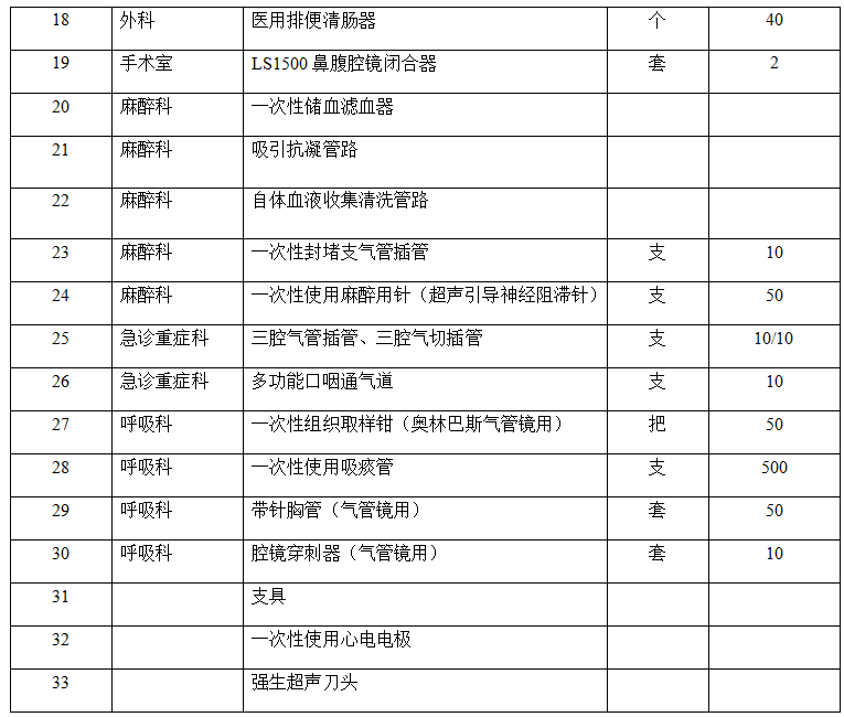 注意:資質材料不完整、不合格的供應商不予接受。另外,以下器械如有配套耗材必須提供相應資質。