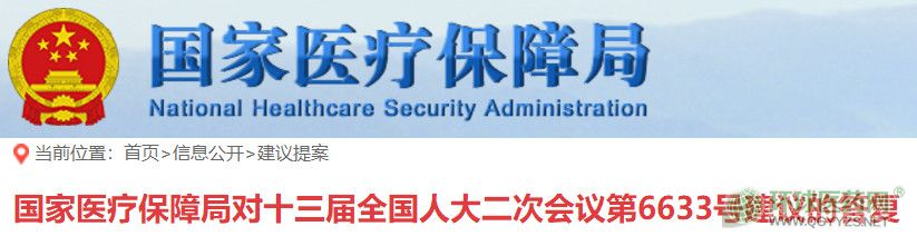 同期,國家醫(yī)保局官網(wǎng)公布《國家醫(yī)療保障局對(duì)十三屆全國人大二次會(huì)議第6633號(hào)建議的答復(fù)》。