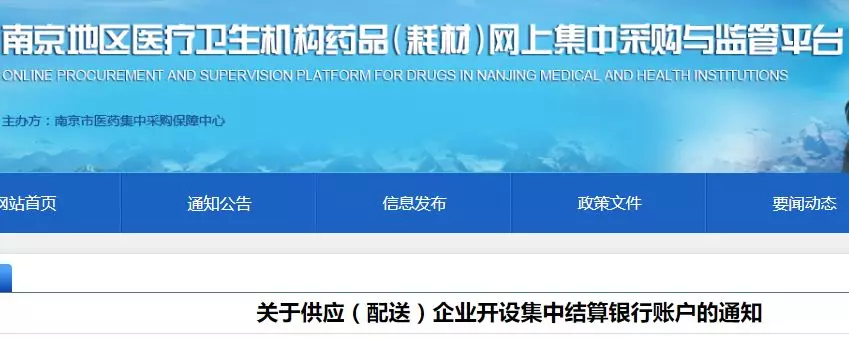 今天,南京市藥品耗材集中采購平臺發(fā)布《關于供應(配送)企業(yè)開設集中結算銀行賬戶的通知》、《關于供應(配送)企業(yè)開設集中結算系統賬號、CA的通知》。