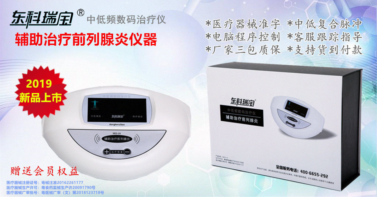東科瑞寶牌前列腺治療儀器-中低頻數(shù)碼治療儀<家用系列/醫(yī)用系列>,為輔助治療前列腺炎等疾病專用泌尿外科男科治療儀器設(shè)備,屬于二類醫(yī)療器械產(chǎn)品,采用多級性中低頻復(fù)合脈沖電流,根據(jù)前列腺特性而專門設(shè)計的電腦程序控制,利用理療電極片等配件耗材輸出,并通過特定穴位經(jīng)絡(luò)釋放起到相關(guān)治療理療作用,操作簡單方便,廠家三包質(zhì)保,提供客服一對一指導(dǎo)服務(wù),2019年度新產(chǎn)品優(yōu)價發(fā)售,并贈送雙倍會員積分,可兌換豐富會員禮品和會員優(yōu)先服務(wù)。